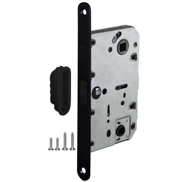 Универсальная защёлка врезная для установки на деревянные межкомнатные двери. Материал - сталь, гальваническое покрытие.Под ручку с квадратом 8 мм и сантехническую завертку с квадратом 6 мм. Удаление ключевого отверстия - 47 мм. Межосевое расстояние - 70 мм. Прямоугольная торцевая планка. Ширина планки - 18мм. Габариты корпуса - 96х71х12 мм. В комплекте - защелка, саморезы, ответная планка и белый пластиковый вкладыш к ней.