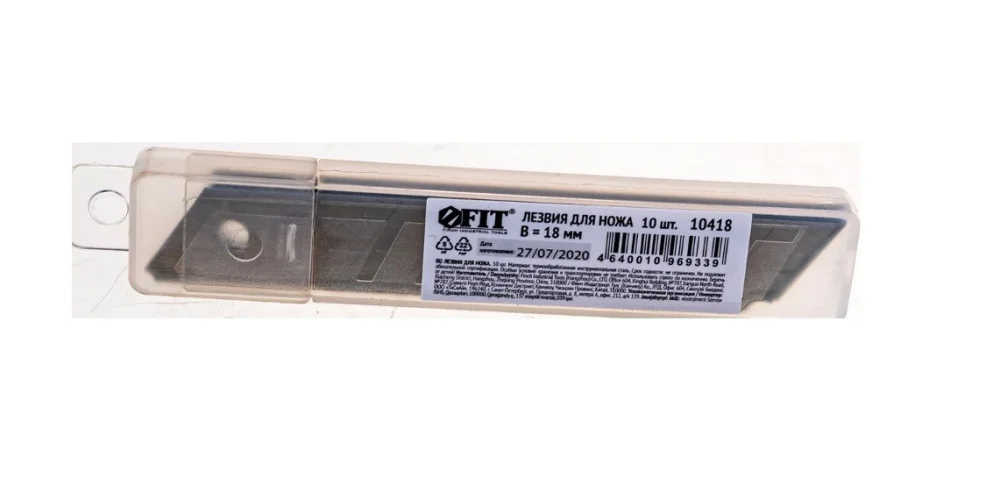 Сегментированные лезвия FIT 10418 являются запасными элементами для технического ножа. Изготовлены из инструментальной стали, имеют долгий срок эксплуатации. Сегментированная конструкция удобна тем, что в необходимый момент можно обломить затупившийся сегмент лезвия и продолжить работу новой режущей кромкой. Это очень удобно и помогает сэкономить время, не отвлекаясь на заточку ножа. Данные лезвия подходят для ножей FIT 10218, 10228, 10238,10248, 10250, 10255, 10258, 10260, 10263, 10265,10267, 10323.