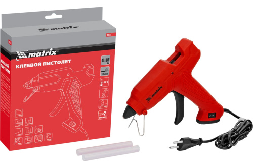 Клеевой пистолет Matrix 93007, 11 мм, с выключателем и индикатором напряжения используется для бытовых и полупрофессиональных нужд: мелкого ремонта, упаковки товаров, фиксации деталей, создания игрушек и объемных украшений, декорирования и т.д. Инструмент пригодится отделочникам, моделистам и тем, кто занимается хенд-мейдом. Он обладает высокой производительностью и выдает 18 г клея в минуту. А для удобства работы предусмотрен индикатор состояния готовности пистолета и выключатель.ПреимуществаНосик оборудован специальной накладкой из каучука, которая защищает оператора от ожогов.Противокапельная система предотвращает подтекание клея, это позволяет снизить его расход и содержать рабочее место в порядке.Пистолет можно ставить на металлическую скобу-подставку для удобства работы.Пистолет полностью готов к работе - в комплекте идут 2 клеевых стержня.