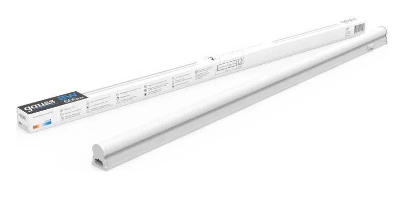 Линейный матовый светильник GAUSS LED TL Elementary 8W 6500K 560x22x33, 600лм TL004 отлично подойдет в качестве дополнительной подсветки рабочих зон, кухни или витрин.