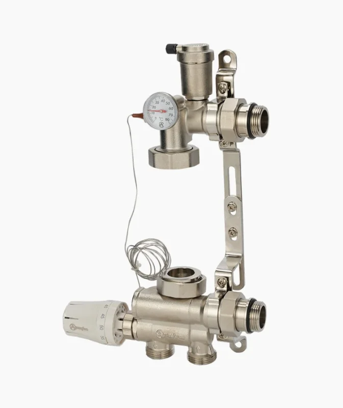 Монтируется на коллекторной группе низкотемпературного контура, подключается к высокотемпературному контуру системы отопления.