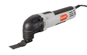Многофункциональный инструмент оснащен качественным двигателем с увеличенным ресурсом. Охлаждение механизма обеспечивается через вентиляционные отверстия в корпусе. На рукоятке корпуса имеется регулятор скорости колебаний, с помощью которого данный показатель можно менять в диапазоне от 13000 до 22000 в мин. Угол колебаний составляет 3 градуса. Устройство легко может распилить или разрезать дерево, плитку, пластик, гипс, цветной металл. В комплект входят шестигранный ключ и 7 различных насадок, которые крепятся на OIS-соединение. Комплект уложен в удобный пластиковый кейс. При бытовом использовании инструмента предоставляется увеличенная гарантия.