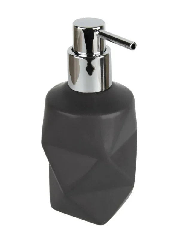 Дозатор для жидкого мыла Tetra цилиндрической формы с фактурной поверхностью, предназначен для порционной подачи мыла, шампуней и других гелеобразных жидкостей. Изготовлен из керамики. Подача моющего средства осуществляется с помощью пластиковой хромированной помпы. Влагоустойчив.
