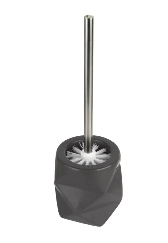 Ёрш для унитаза Tetra графит B4505-5 включает в себя ерш с пластиковой хромированной ручкой и керамическую подставку цилиндрической формы с фактурной поверхностью. Щётка имеет густой жесткий ворс, обладает высокой стойкостью к стиранию.