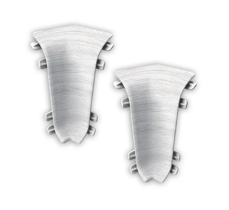 Внутренний уголок устанавливается на стыке двух отрезков напольного плинтуса, которые соединяются в углу комнаты. Он выбирается в зависимости от цвета и размеров плинтуса.