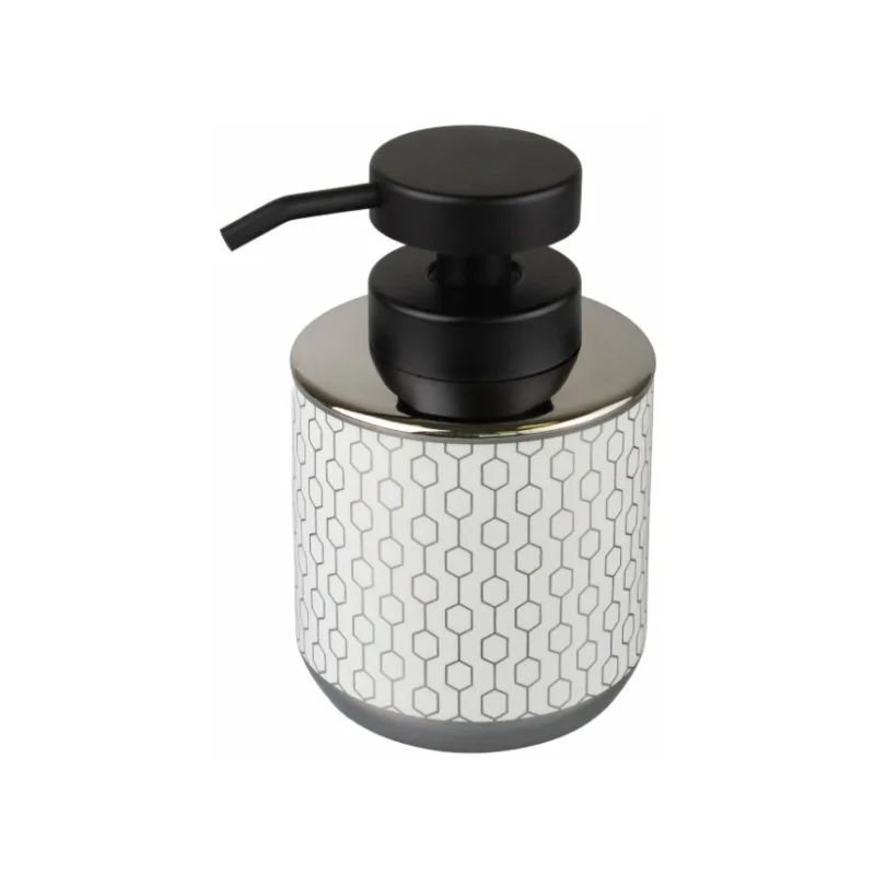 Дозатор для мыла выполнен из керамики - экологически чистого материала, безопасен, влагоустойчив и не требует специального ухода.