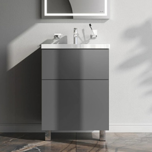 Напольная мебель для ванной Am.Pm GEM идеально подойдет тем кто предпочитает минимализм в интерьере и выбирает абсолютный комфорт. Современный европейский дизайн от DanelonMeroni (Великобритания/Италия). Самая компактная и функциональная раковина на рынке: проекция всего 42 см при максимальной глубине чаши! Фурнитура push-to-open - открывание ящика нажатием на фасад. Ящики с антискользящим покрытием цвета антрацит – европейский стандарт. Фасады и корпус окрашены итальянскими экологически чистыми красками. Раковина приобретается отдельно