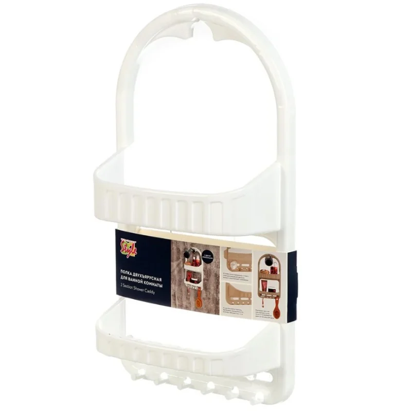 Полка двухъярусная навесная с крючками от DDSTYLE — идеальный аксессуар для вашей ванной комнаты. Ее два уровня позволяют удобно разместить косметику, мыло, гели и другие нужные мелочи. Белый цвет полки гармонично впишется в интерьер, добавив легкости и свежести. Крючки на нижнем ярусе идеально подходят для полотенец или других аксессуаров. Компактная и практичная, эта полка поможет поддерживать порядок в ванной, максимально используя доступное пространство.