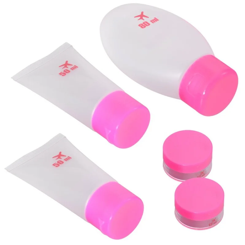 Набор флаконов удобно взять с собой в путешествие, спортивный зал или бассейн. В них вы сможете разместить необходимые вам косметические средства (шампунь, кондиционер, лосьон, гель для умывания, крем и т. п.), Флаконы такого объема разрешены для провоза в ручной клади в самолете, что очень удобно и позволяет сэкономить место в чемодане. Благодаря прозрачной косметичке с замком «зип-лок», ее содержимое всегда на виду и на своем месте, а петля для подвешивания позволит разместить ее в удобном для вас месте вовремя умывания или принятия душа.