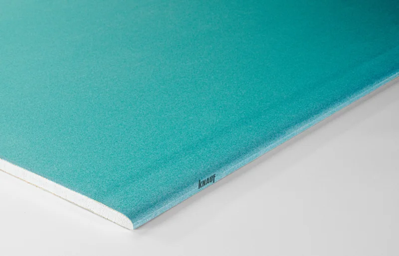 КНАУФ-лист влагостойкий (ГСП-Н2) содержит силикон в сердечнике, снижающий водопоглощение.