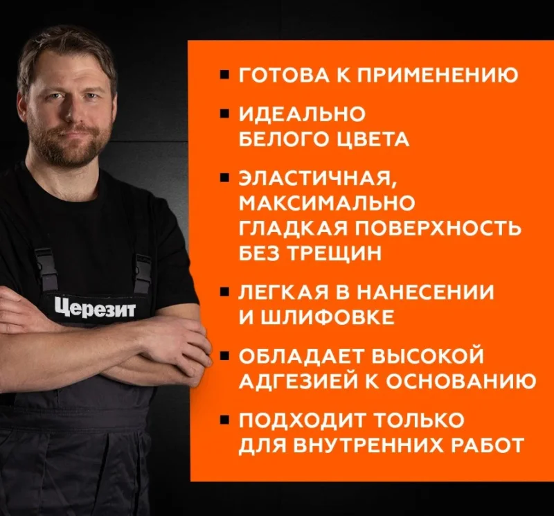 Шпаклевка полимерная готовая Церезит IN 95 5 кг универсальная 2247429 полностью готова к применению. Чисто белый цвет шпаклевки способствует снижению расхода лакокрасочных материалов в процессе дальнейшего окрашивания обработанной поверхности. Является универсальной - может применяться на различных поверхностях с низкой прочностью и высокой впитывающей способностью - на гипсокартоне, бетоне, цементной штукатурке. Не рекомендована к применению на деревянных основаниях. Содержит в своем составе мелкодисперсный наполнитель, что способствует получению максимально гладкой поверхности.
