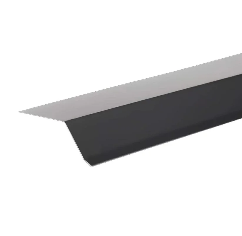 Планка карнизная выполнена из оцинкованной стали с защитным полимерным покрытием. Планка надежно примыкает гидроизоляционный ковер к трубам, вентиляционным проходам. Препятствует проникновению влаги под кровлю. Защищена от коррозии.