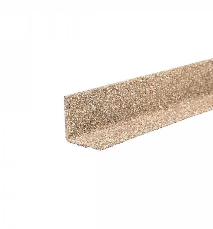 Уголок формируется из высококачественной стали и покрывается слоем алюмоцинка и акрилового грунта. На внешнюю сторону изделия для защиты и завершения эстетического вида наносится натуральная базальтовая посыпка.