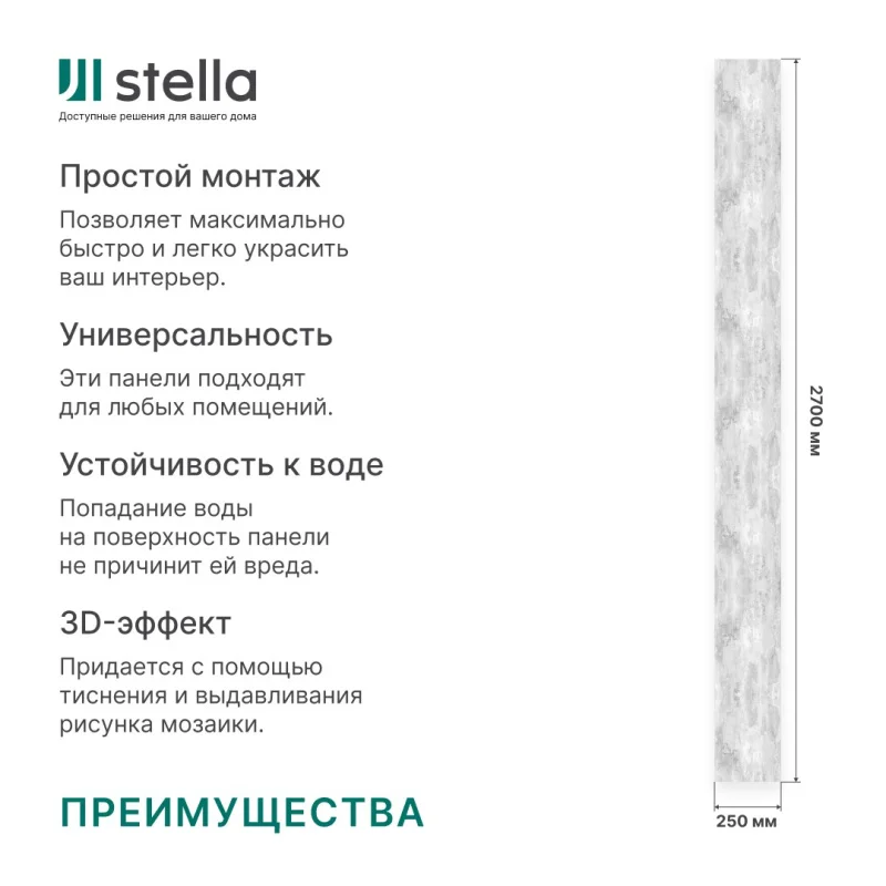 Пластиковые панели ПВХ представляют собой современный материал для внутренней отделки, который обладает рядом преимуществ. Отличаются устойчивостью к воздействию ультрафиолетовых лучей, что позволяет предотвращать их выцветание и сохранять привлекательный внешний вид панелей на протяжении длительного времени. А так же ударопрочностью, которая обеспечивает надежную защиту от механических повреждений, таких как царапины или вмятины.