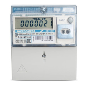 Счетчик электроэнергии Энергомера CE102 R5.1 145-JAN, 230В, 5-60А 101002003012776 измеряет и отображает параметры сети.