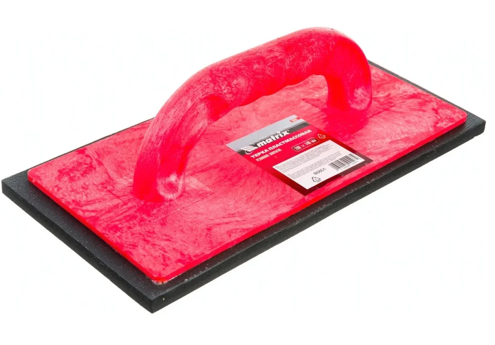 Пластмассовая терка Matrix 86801, 280 х 140 мм, с резиновым покрытием, предназначена для финишного шлифования и используется во время штукатурных работ. Позволяет получить идеально гладкую поверхность. Может использоваться как инструмент для затирки швов. Приспособление размером 280 х 140 мм оптимально для быстрой обработки отделочного покрытия.ПреимуществаПодошва с резиновым покрытием не повреждает обрабатываемый материал.Пластиковая ручка удобно лежит в руке, повышая комфорт работы.Терка весит 248 г, поэтому с ней можно долго работать без усталости.