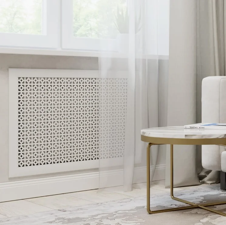 Изготовлен из экологичного и высококачественного МДФ, не деформирующимся под воздействием высоких температур. За счет перфорации теплоотдача остается на том же уровне, что до установки экрана. Устанавливается на высоту не менее 35 мм от радиатора и 60 мм от пола и подоконника.