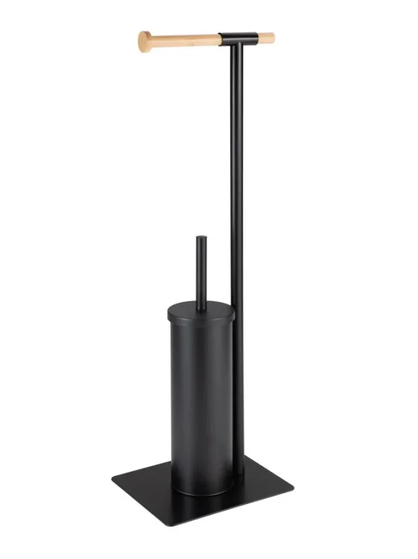 Бумагодержатель выполнен из натурального бамбука, а колба ерша и стойка из высококачественной стали.