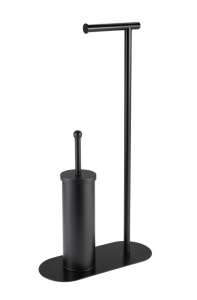 Ерш напольный-стойка с бумагодержателем выполнен в черном цвете и в стильном дизайне, антискользящие накладки для основания, позволяющие ершу устойчиво располагаться на плитке.