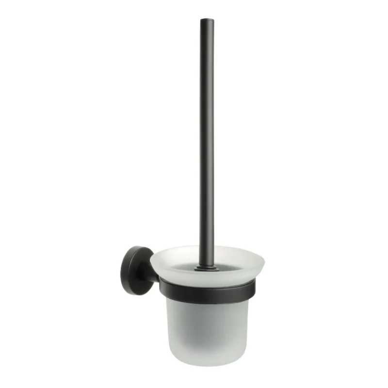 Ерш для туалета, настенный СOMFORT BLACK — это современный аксессуар в черном матовом цвете. Который подойдет для любителей расставлять акценты и делать контрасты в интерьере. Аксессуары выполнены из прочных материалов — металла и закаленнного стекла. Внешнее покрытие защищает изделия от изнашивания и при должном уходе сохраняет безупречный вид на весь период использования.