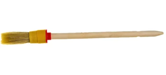 Натуральная светлая щетина. Предназначена для всех типов лакокрасочных материалов. Кончики щетины на конце расщеплены для лучшей впитываемости краски. Бандаж изготовлен из пластика. Для надежного удержания щетины используется клей на эпоксидной основе и деревянные клинья. Деревянная рукоятка отшлифована, без покрытия.