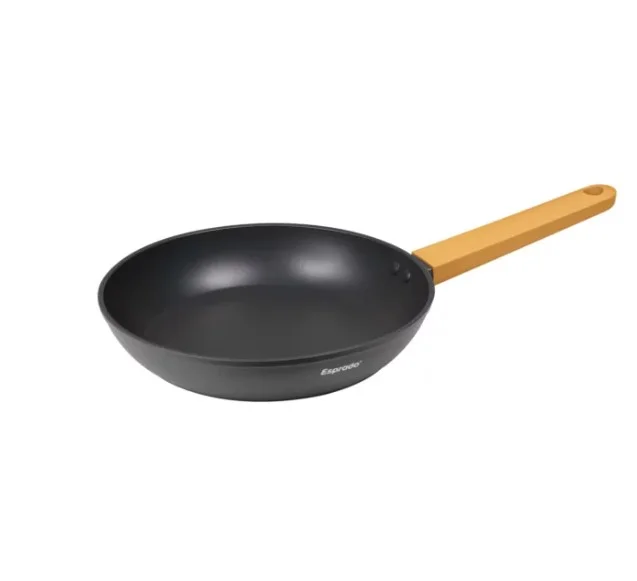 Сковорода из кованого алюминия. Коллекция Apricot. Размер:24 см X4.6 см. Толщина обода 4.2 мм. Толщина стенок: 1.6 мм. Толщина дня: 3.2 мм. Дно: индукционное с отверстиями с лого. Размер индукционного диска: 130мм. Внутреннее покрытие – Pfluon ® Cookmark (2 слоя). цвет: Pantone матовое 7540C. Обод окрашен в цвет внутреннего покрытия: Pantone матовое 7540C. Алюминиевые заклёпки окрашены в цвет внутреннего покрытия: Pantone матовое 7540C . Снаружи термостойкое покрытие. цвет: Pantone матовое 7540C. Лазерная гравировка логотипа на боковой стенке изделия. Ручка – бакелитовая с покрытием soft touch c лого. цвет: Pantone 7508C. Пламегаситель из нержавеющей стали Pantone матовое 7540C.