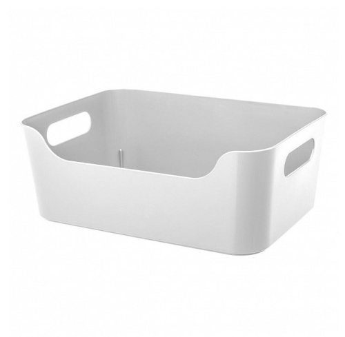 Корзинка с ручками Econova поможет хранить полезные мелочи всегда на своих местах: документы, ключи, бижутерию, косметику, пульты, канцелярские товары, маленькие предметы одежды, аксессуары для кухни. Благодаря боковым ручкам корзинки удобно переносить или снимать с полки. Выемка в передней части позволяет видеть, что именно хранится в корзинке и обеспечивает удобный доступ к её содержимому. Корзинка со скруглёнными углами и глянцевой поверхностью легко моется или протирается влажной тканью.