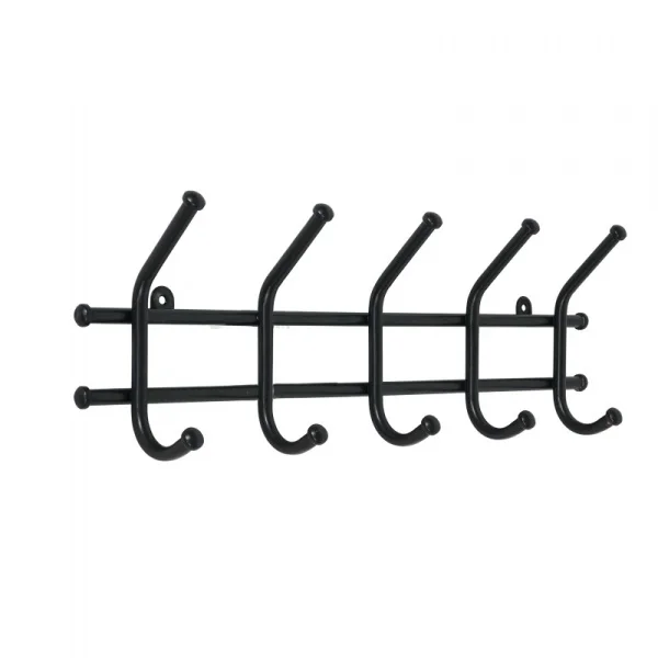 Надежная сварная конструкция. В конструкцию входят 5 крючков с металлическими колпачками и петельками для крепления. Допустимая нагрузка до 5 кг на крючок. Металлическая вешалка функциональна, надежна и проста в уходе. Данное изделие полностью безопасно в использовании. Подойдет для размещения в прихожей и офисных помещениях. Габариты: 480*80*168 мм