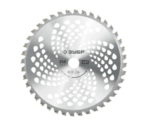 Основа из легированной стали, твердосплавные напайки - позволяет скашивать грубую растительность
