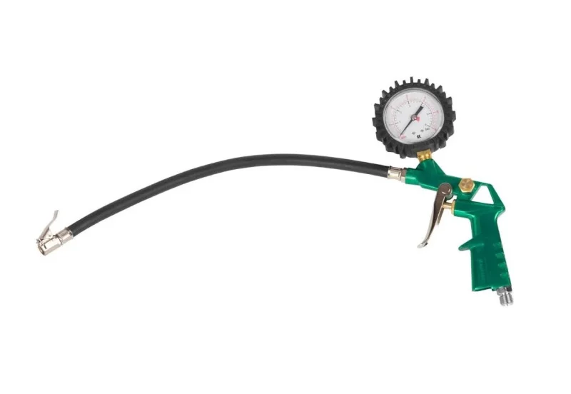 Пистолет для подкачки шин KRAFTOOL 06535_z01, предназначен для совместной работы с компрессором для подкачки шин. Изготовлен из высокопрочного сплава, выдерживает высокие нагрузки. Максимальное давление до 15 бар. Большой манометр и хорошо читаемая шкала от 0 до 6 бар. Возможность измерения давления без подключения к компрессору. Клапан для стравливания избыточного давления.