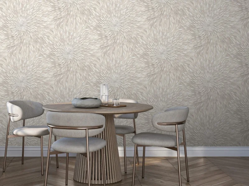Эти виниловые обои на флизелиновой основе выполнены по технологии горячего тиснения, что придаёт поверхности объём и выразительную текстуру. Мотив коллекции Astra вдохновлён природными формами — утончённые цветочные элементы создают лёгкое, воздушное настроение в интерьере.