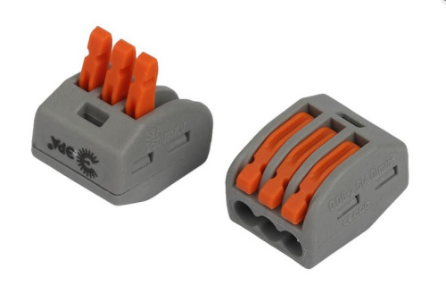- конструкция механизма с рычажками обеспечивает многоразовый монтаж и демонтаж всех типов медных проводников: одножильных, многожильных и тонкопроволочных.