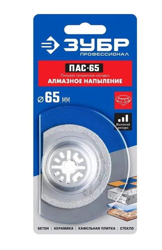 Насадка пильная с алмазным напылением ЗУБР 15564-65, предназначена для резки бетона, керамики, кафельной плитки, стекла. Насадка изготовлена из высококачественной инструментальной стали с покрытием из синтетических промышленных алмазов на автоматизированных производственных линиях с применением новейших методов нанесения рабочего слоя.
