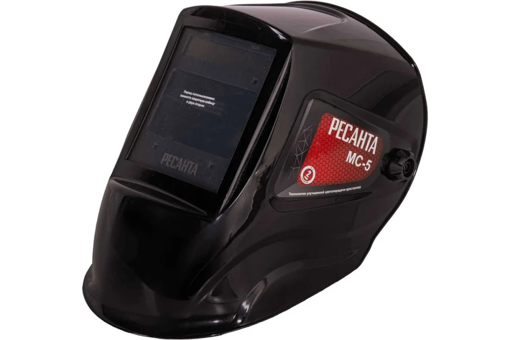 Затемнение в светлом состоянии составляет 4 DIN, в затемненном – 9-13 DIN. Сварочная маска данной модели имеет двойной слой кристаллов, благодаря чему дуга может находиться под любым углом. Функция TEST позволяет проверить работоспособность маски до начала работ, что исключает случайное негативное воздействие сварочной дуги на глаза. Корпус и оголовье изготовлены из прочного пластика. Удлиненный выступ в области подбородка надежно защищает воротниковую зону. Наличие эластичной подкладки исключает скольжение Ресанта МС-5 во время работы, а также обеспечивает хорошую фиксацию.