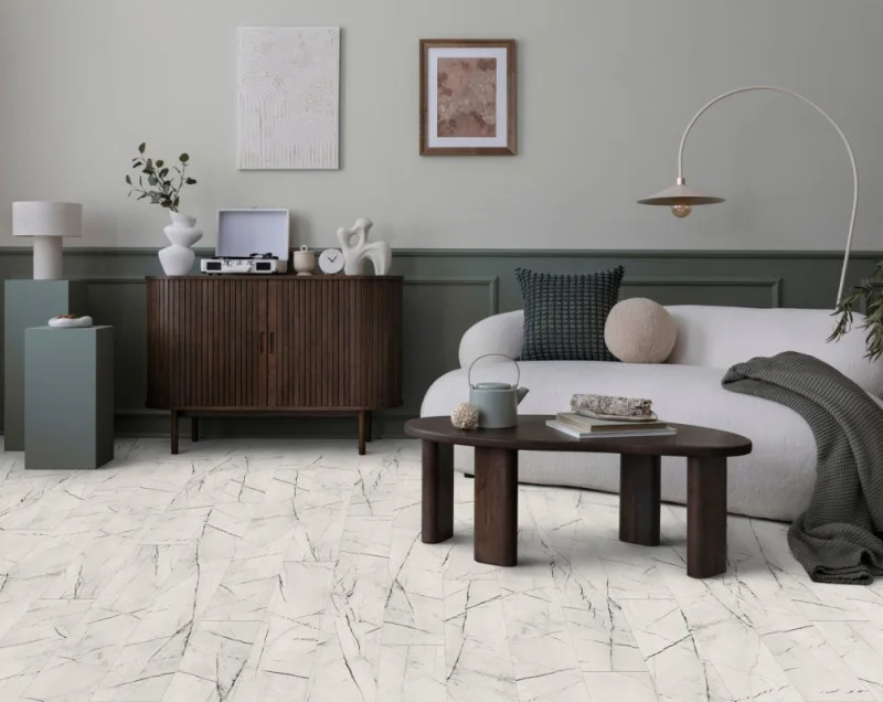 Декор под натуральный камень придаёт интерьеру изысканность и актуальность, а формат XL визуально расширяет пространство. Благодаря технологии New Lock, укладка ламината становится быстрой и простой, без использования клея.