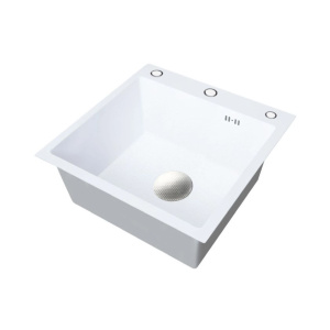 Цвет белая Размер (ВхШхГ), см50х50х22 Материал Нержавеющая сталь 304 Форма Квадратная Монтаж на столешницу подвесная с навесами с переливным отверстием сифон, коландер в цвете хром благодаря высококачественному покрытию мойка имеет большую износостойкость, и прекрасно сопротивляется воздействию агрессивных веществ олеофобное покрытие позволяет легко отмывать загрязнения и создает дополнительную антикоррозионную защиту.