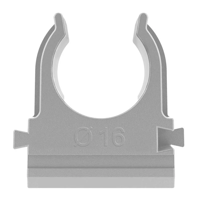 Используется для крепления гофрированных и гладких труб к поверхности стен или потолка. Для крепления к поверхности в крепёж-клипсе предусмотрено технологическое отверстие под саморез или дюбель.
