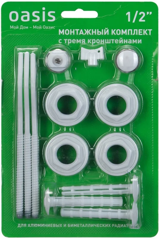 Монтажный комплект 1/2" Oasis применяется для присоединения радиаторов к трубам диаметром 1/2". Детали выполнены из качественных материалов, имеют длительный срок службы.