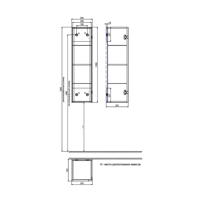 Размер изделия, мм. 300*320*1090