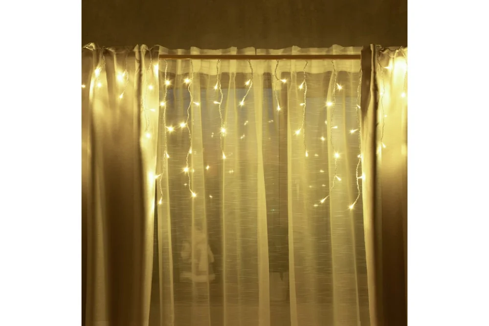 Прозрачная гирлянда длиною 2 м состоит из 12 нитей, на которых расположены 48 светодиода, обеспечивающих разноцветное свечение.