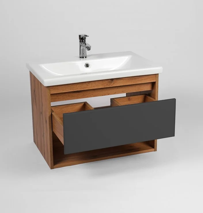 Тумба под раковину VIANT Бостон 70 VBOS70COG-T1YP подвесная Графит матовый Дуб Вотан