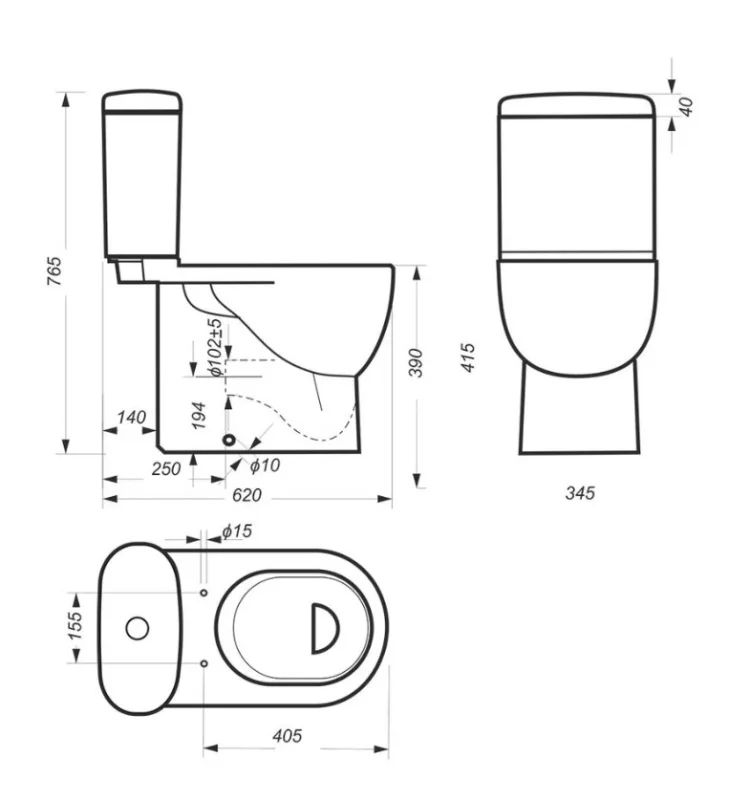 чаша унитаза 1 шт., бачок с крышкой 1 шт., комплект крепежа сан. компакта к полу 1 шт., сиденье с крышкой 1 шт., двухрежимная арматура 1 шт.