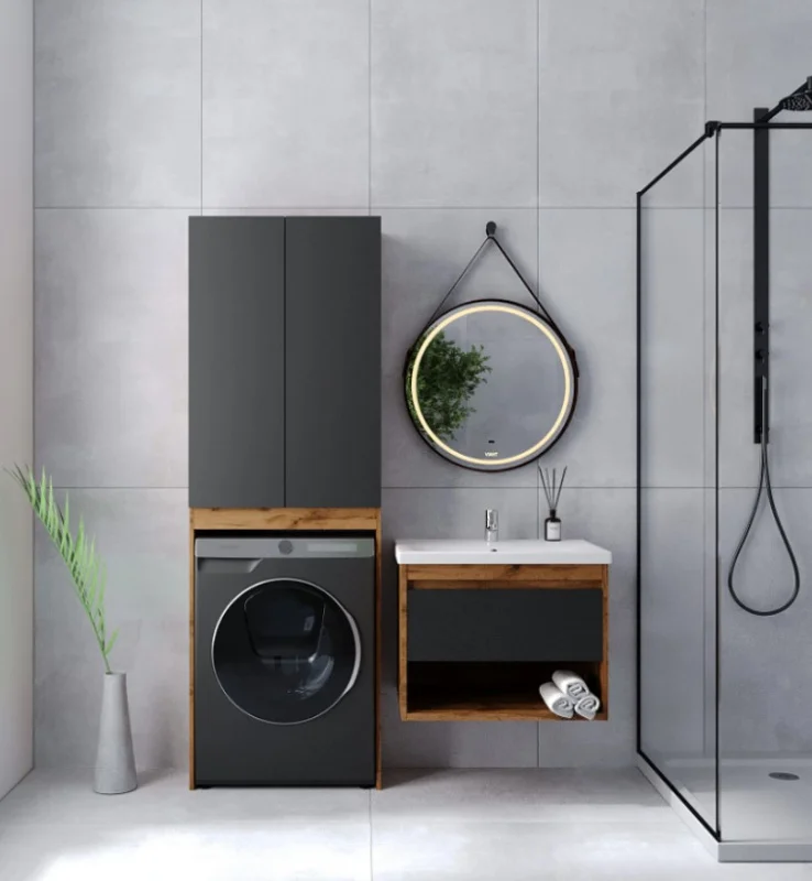 Тумба под раковину VIANT Бостон 60 VBOS60COG-T1YP — это идеальное решение для стандартной ванной комнаты. Изготовленная в современном стиле, она сочетает в себе графит матовый и дуб Вотан, что придаёт интерьеру изысканность. Данная модель подвесная, что позволяет сэкономить пространство и создать ощущение лёгкости.