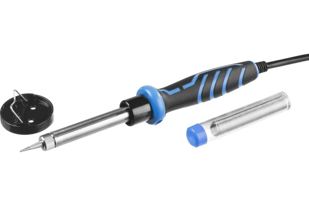Паяльник, подставка, припой |