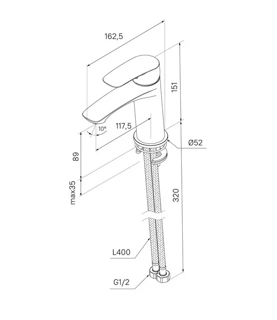 Увеличенный вынос излива направляет поток воды в самую удобную точку раковины, обеспечивая максимальную свободу движения в зоне умывания. В комплекте гибкая подводка и крепеж.