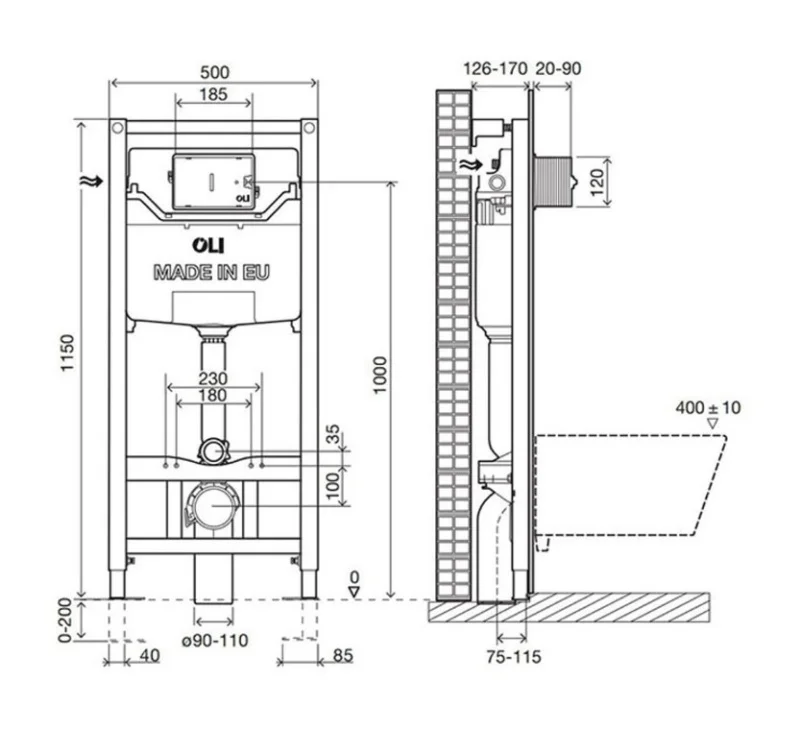 Инсталляция Oli 120 для подвесного унитаза. Используется при проведении монтажных работ в качестве крепёжной основы. Позволяет крепко зафиксировать унитаз, подвести к нему воду, канализацию.