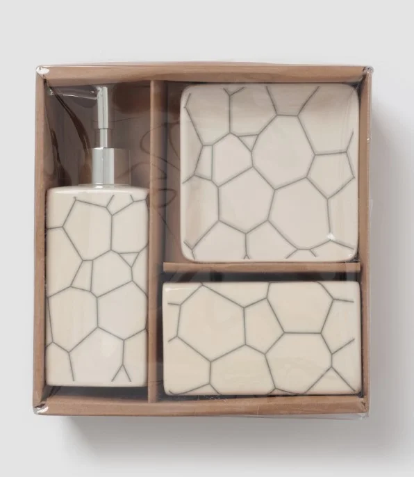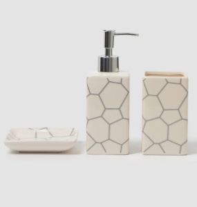 Создайте атмосферу уюта и игривости в вашей ванной комнате с набором аксессуаров, который превращает обыденные вещи в элементы декора. Комплект в белом цвете с яркими узорами включает мыльницу, дозатор для мыла объемом 360 мл и стакан такого же объема, которые идеально дополнят любое пространство.