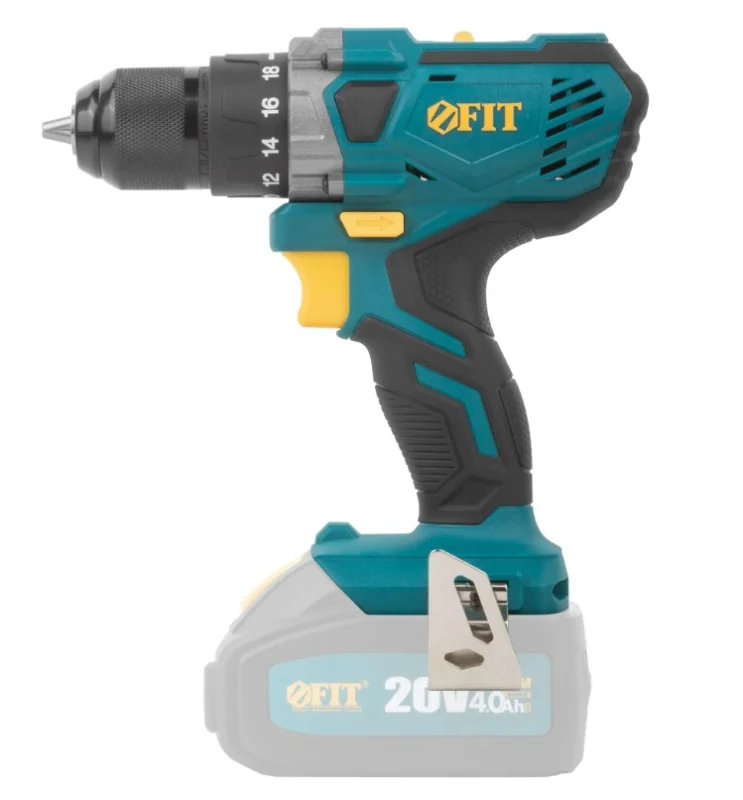 Дрель-шуруповерт FIT CD-S20LiW оснащена двухскоростным планетарным редуктором, что обеспечивает плавный переход между режимами 0-400 и 0-1400 об/мин. Эргономичная конструкция с резиновыми вставками и металлической клипсой на ремень делает работу комфортной и безопасной.