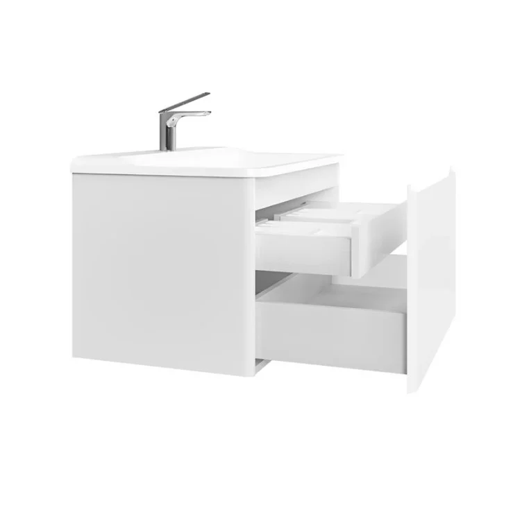 Компактный выдвижной ящик освобождает пространство под тумбой для дополнительного использования.