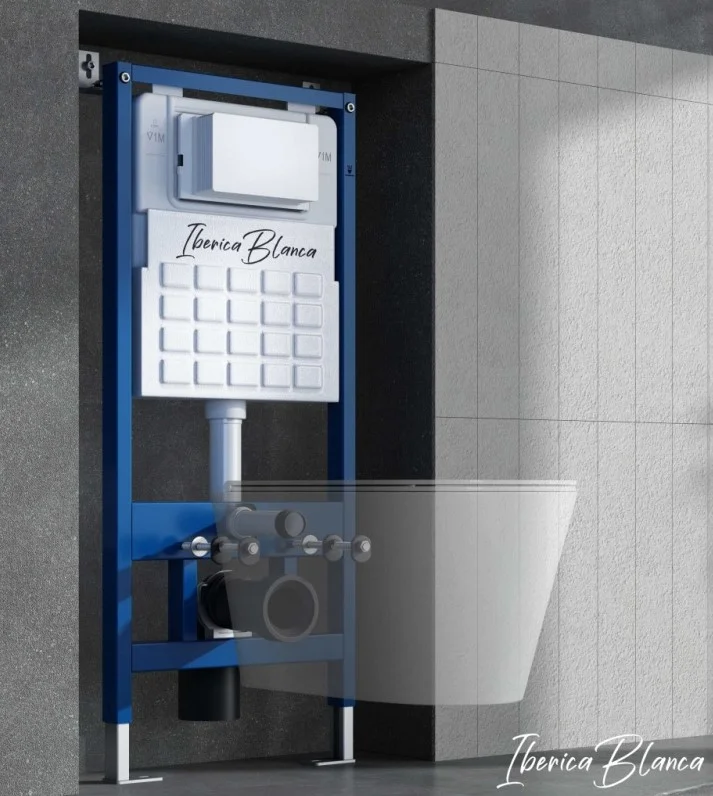 Инсталляция для подвесных унитазов Iberica Blanca SILENCIO представляет собой надежное и практичное решение для вашей ванной комнаты. Она совместима со всеми типами подвесных унитазов, у которых межосевое расстояние составляет 180 или 230 мм.Рама инсталляции выполнена из высокопрочной стали с антикоррозийным покрытием, что обеспечивает надежность и долговечность. Она способна выдерживать нагрузку до 400 кг, обеспечивая безопасность использования. Цельнолитой сливной бачок изготовлен из HDPE пластика, который является безопасным и нетоксичным материалом. Устойчив к гниению, предотвращает образование плесени и грибка, обеспечивая долгий срок службы. Бачок дополнительно изолирован пористым материалом от шума, что делает работу сливного и заливного миханизма максимально тихим по сравнению с другими инсталляциями. Гарантия на инсталляцию Iberica Blanca составляет 10 лет. Инсталляция оснащена механическим двухрежимным сливом с регулировкой: малый смыв от 3 до 4,5 л и большой от 6 до 9 л, что делает ее эффективной и экономичной, позволяя настроить смыв в зависимости от ваших нужд. Глубина инсталляции составляет 120 мм, высота - 1140 мм с регулируемыми ножками в диапазоне от 0 до 200 мм, ширина - 50 см. Крепление инсталляции осуществляется к фронтальной стене. Предустановлен сливной клапан для защиты от перелива. Подвод воды осуществляется сверху бачка, латунный фитинг 1/2 .Обслуживание инсталляции не требует инструментов или разбора благодаря быстросъемной кнопке. Диаметр выпуска в канализацию составляет DN 90/110, глубина встраивания - 120 мм.Инсталляция от Iberica Blanca - это не просто функциональное устройство, это залог комфорта и спокойствия на десятилетия вперёд.